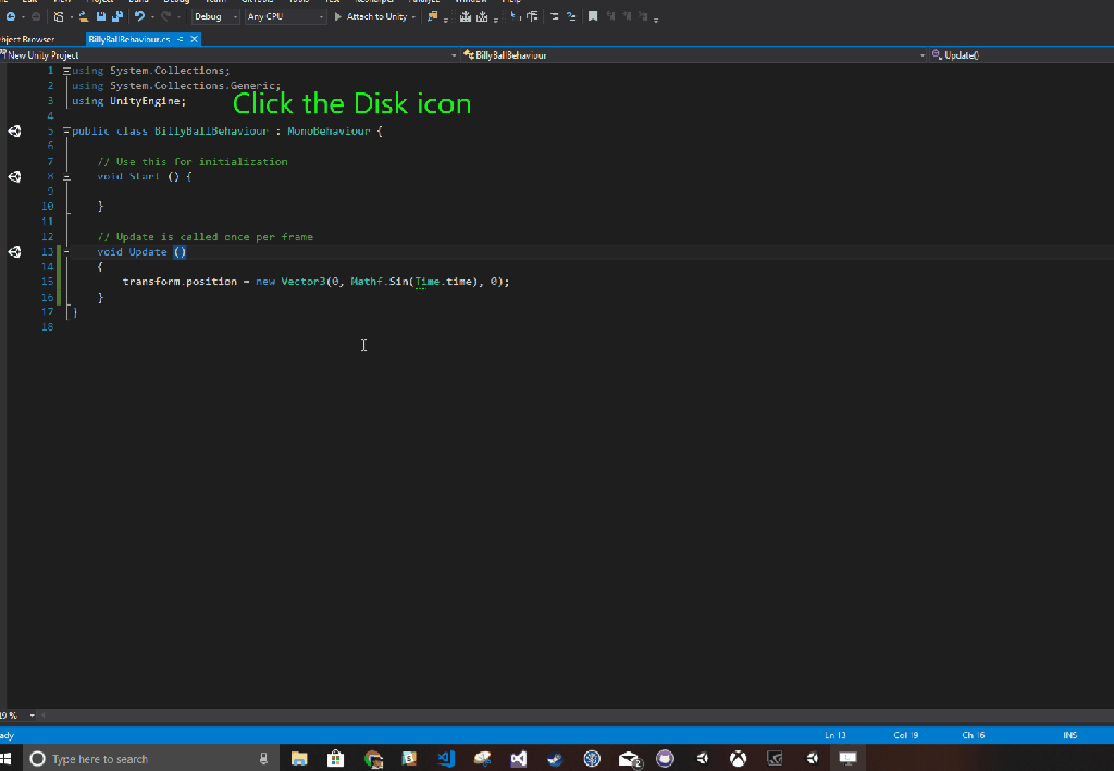 In 10 instructions or less document the steps for making a ball jump in unity.